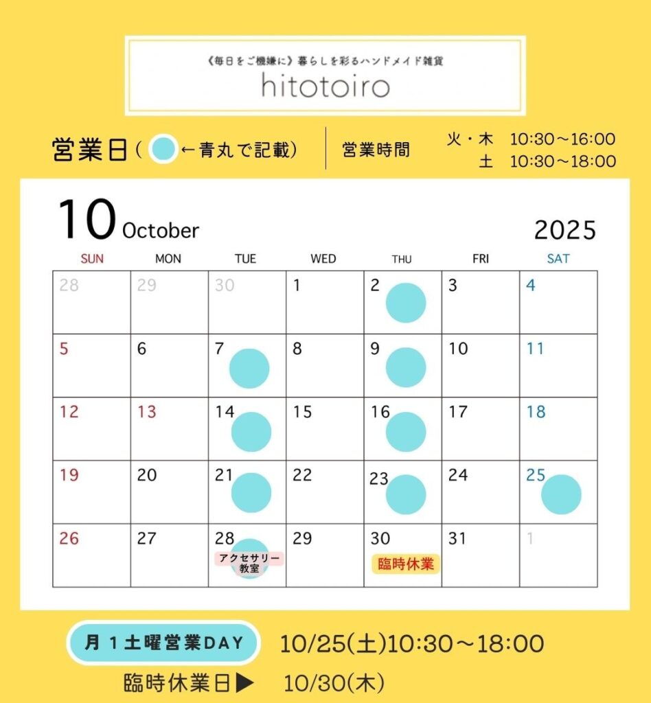 2025年10月の営業日とイベントのお知らせ