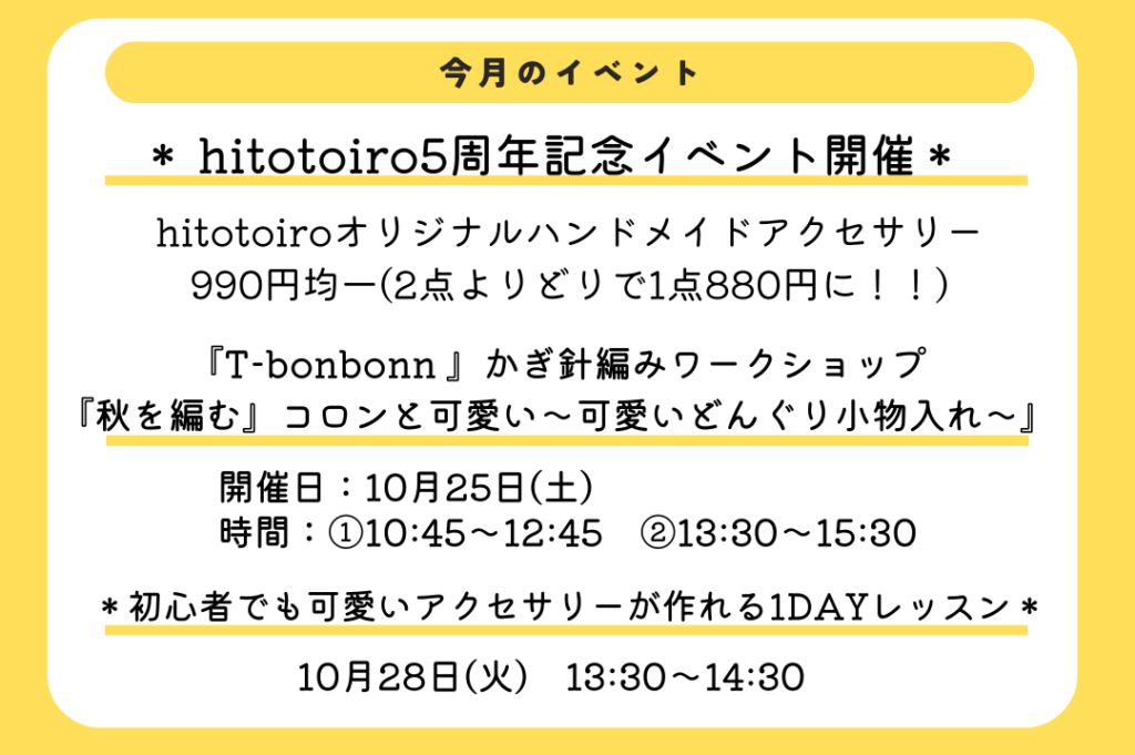 ハンドメイド雑貨のお店「hitotoioro」